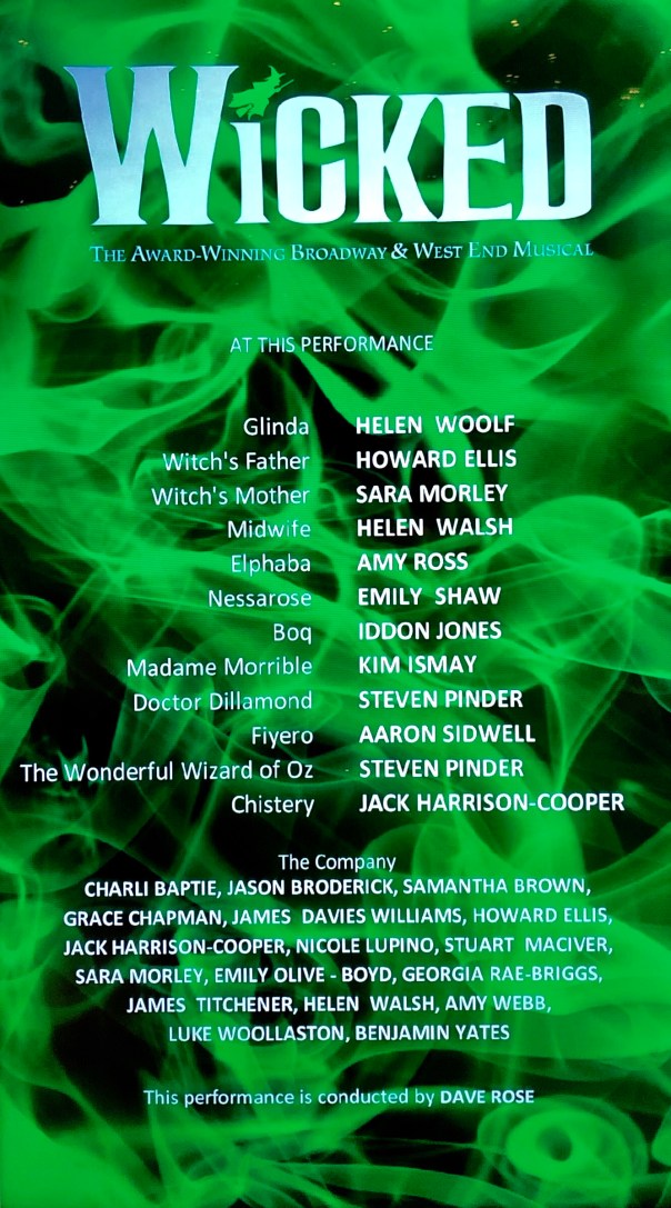 Tuesday 20th November 2018, another trip to Cardiff Bay and the Millennium Centre for another performance of ‘Wicked’.